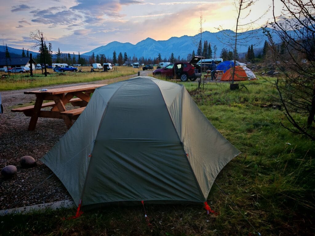 Jasper has plenty of hotels, as it’s a key destination on the classic Canadian Rockies Road Trip. The first time we visited Jasper, we stayed in the Caribou Lodge in the town. However, this time we decided to keep costs low by camping. After my backpacking in Patagonia, I had my Big Agnes Tent, and we were lucky to get a reservation for 6 nights at Whistler’s Campground, a few kilometres outside of town. The campsite can accommodate 781 pitches with modern facilities, electric hook-ups, and plenty of space for RVs and tents.