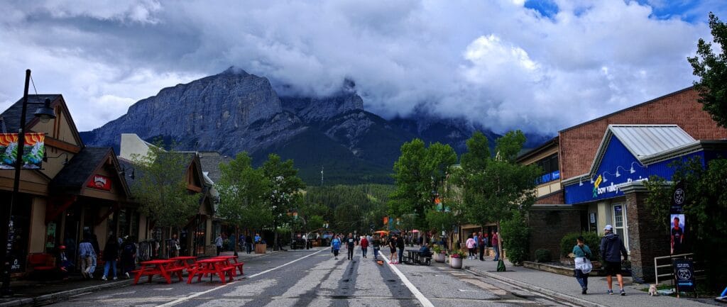 It was the final day of our trip, where we had a long day’s drive back to Calgary. First, we walked into Jasper to have a pastry and coffee at the Bear’s Paw Bakery (popular for a reason). And then packed up the damp tent and dry stuff into the car before the next wave of rain hit us in the morning. We left camp around 10 am, and I had the pleasure of the first stint along Icefields Parkway to Athabasca Glacier, where we swapped drivers. We decided not to stop for any of the attractions as the roads were busy on the Saturday and low cloud was covering the usually amazing views. Finally, we drove into Banff and parked in the residential area to save on parking. The town was even busier than we remembered, even in the rain. We popped into several outdoor clothing shops to escape the cold rain. It’s a shame that the centre of Banff is not pedestrianised anymore, as the pavements are chaotic! We went to Magpie and Stump for happy hour tacos as a late lunch, and we were highly impressed!